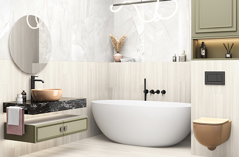 Ежедневно каждый из нас посещает ванную комнату и кухню. В этих помещениях керамическая плитка применяется чаще всего. Правильный цвет облицовки, её сочетание с другими вариантами оттенков в интерьере помогут создать позитивное настроение на целый день.