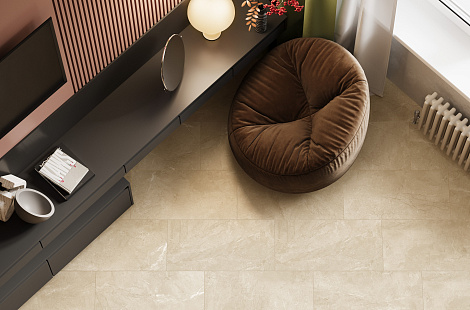- Кафель под камень востребован при обустройстве помещений в современных стилях. Он полностью напоминает текстуру натурального материала, отлично выглядит в сочетании с хромированными элементами мебели. Эта керамическая плитка гармонично дополняет лаконичный дизайн без излишеств и вычурности.
